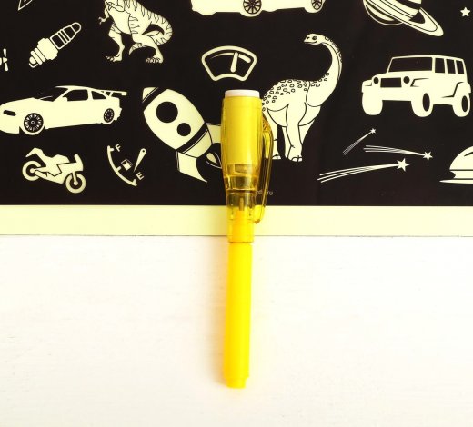 У волшебной ручки есть ещё одна функция — невидимые чернила! Снимите колпачок и напишите что-нибудь на листе бумаги, а затем посветите фонариком, и текст проявится. Можно оставлять невидимые послания для друзей, как настоящий шпион!