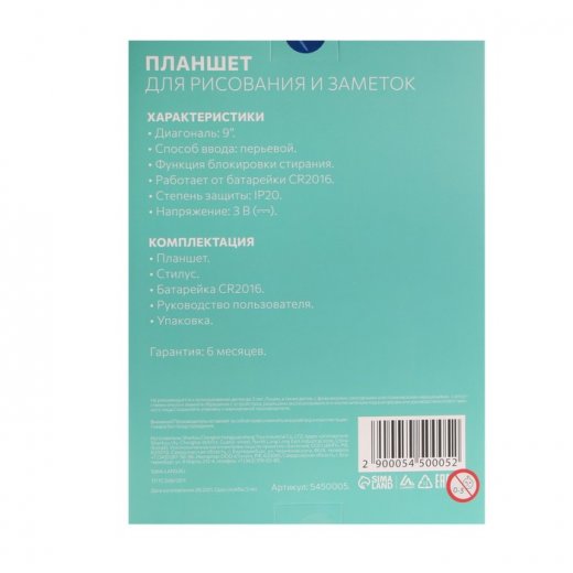 Благодаря планшету Luazon ребенок сможет создавать рисунки, чертить, писать или делать подсчеты, оставлять сообщения и многое другое. Графический планшет использует технологию LCD без подсветки, то есть на жидкокристаллическом экране остаются следы в местах нажатия на него. Используйте стилус, который идет в комплекте, чтобы что-то записать или зарисовать. Легкое очищение экрана осуществляется нажатием одной кнопки. Одной батарейки хватит на тысячи стираний.