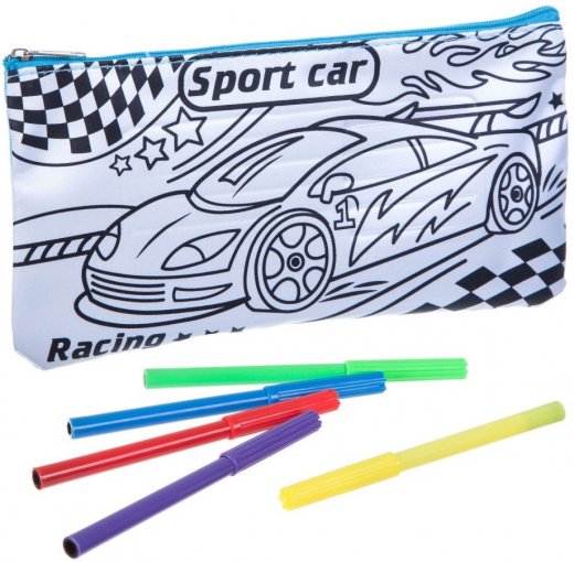 Пенал для раскрашивания – это прекрасный набор для творчества, который поможет создать пенал в таком цветовом исполнении, в каком ребенок захочет. В комплекте можно найти пенал из текстильного материала с удобным замком-молнией, на котором имеется заготовка рисунка с изображением спортивного автомобиля на гонках. С помощью фломастеров, представленных в наборе, ребенок сможет с легкостью раскрасить рисунок по своему вкусу, используя все свое воображение и фантазию и не ограничивая себя ни какими рамками соответствия цветов. Ведь может это именно тот вид творчества в котором ребенок найдет себя и проявит в полной мере.