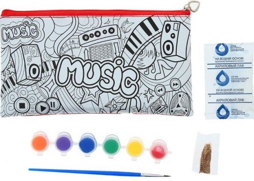 Клатч пенал раскраска Music - это уникальный набор креативного творчества, способствующий развитию художественных способностей, чувства цвета, фантазии, воображения, аккуратности, координации и мелкой моторике рук.