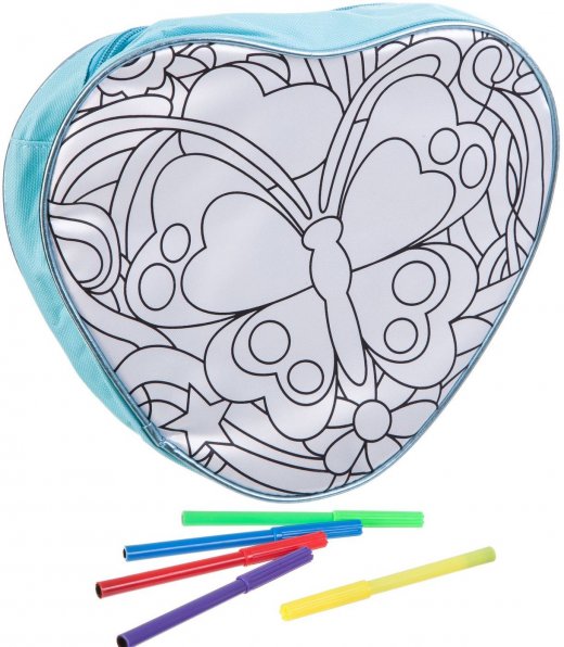 Рюкзак для раскрашивания Сердце – это отличный подарок для девочки. Во-первых, это новый аксессуар, во-вторых, он авторский, в-третьих, ваш ребенок сам диктует моду, покрывая рюкзак красочными узорами. В творческом процессе понадобится, собственно, рюкзак и перманентные фломастеры, которые сохранят ваш рисунок надолго – какой бы любимой ни стала сумочка.