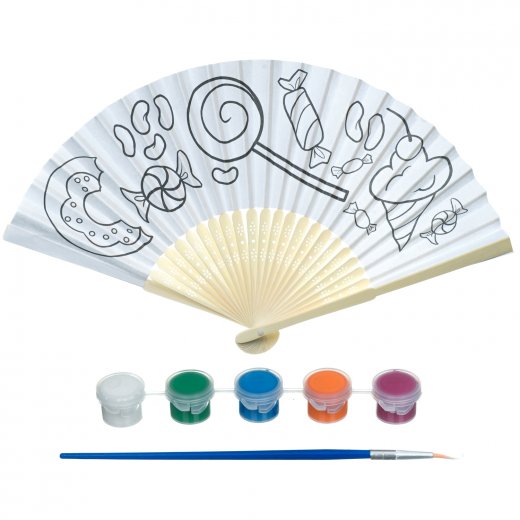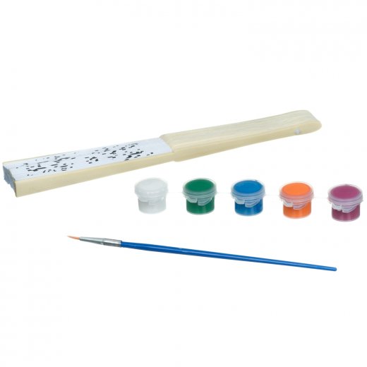 Состав набора: веер с контурным рисунком, краски (6 цветов), кисть.