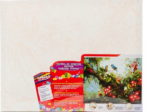 Роспись холста по номерам Райские птички Креатто - это увлекательное занятия для тех, кто уже умеет рисовать и для тех, кто никогда еще не пробовал. Данный набор будет интересен детям от 7 лет и старше, а также взрослым, которые хотят пробудить в себе талант художника. Ребенок с удовольствием будет раскрашивать ощущая себя художником при этом получая не только удовольствие но, и пользу. Раскрашивание способствует развитию творческого и образного мышления, аккуратности и координации, а также усидчивости ребенка.