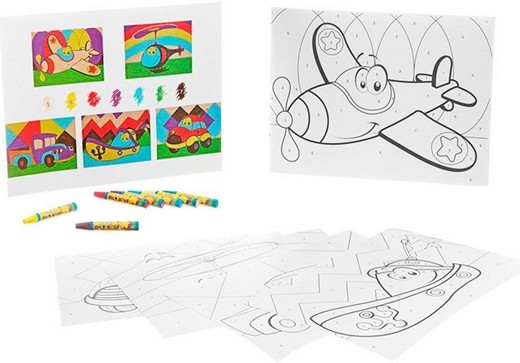 Благодаря набору раскрасок по номерам, ребенок сможет раскрасить изображения разных видов транспорта. В набор входят сразу пять картинок, на которых изображены: самолет, вертолет, грузовик, катер и легковая машинка. Все они нарисованы с забавными мордашками, что сделает творческий процесс еще интересней. Ребенок должен раскрасить фрагменты с номерами соответствующим номеру цветом пастельного мелка. Мелки удобно держать в руках. При выполнении такой работы малыш должен быть сосредоточен и аккуратен. Зато результат превзойдет все ожидания! Способствует развитию мелкой моторике рук, аккуратности и творческому мышлению.