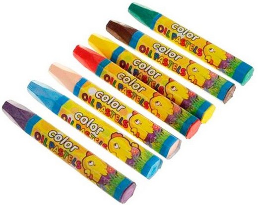 Состав набора: картинки с контуром - 5 шт, пастельные мелки - 7 цветов, кисточка.