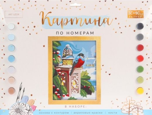 Купить Картину по номерам Снегирь с красками в Новосибирске Вы можете в магазине развивающих и настольных игр "Игры Почемучек"