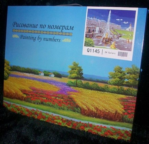 Состав набора: холст 40см*50см на подрамнике с пронумерованным рисунком, акриловые краски, 3 кисти разного диаметра, крепление на стену, контрольный лист для сверки цветов.