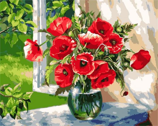 Купить Картину по номерам Маки на окне 40х50 см в Новосибирске Вы можете в магазине развивающих и настольных игр "Игры Почемучек"