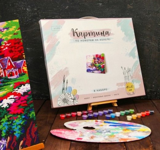 Состав набора: холст на раме, краски, кисть.