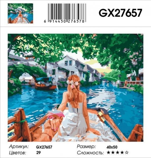 Состав набора: холст на подрамнике, краски акриловые, кисти, крепления, схема картины.
