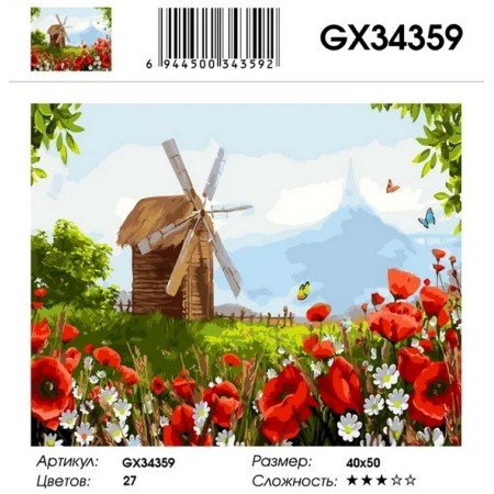 Купить Картину по номерам Мельница в поле в Новосибирске Вы можете в магазине развивающих и настольных игр "Игры Почемучек"