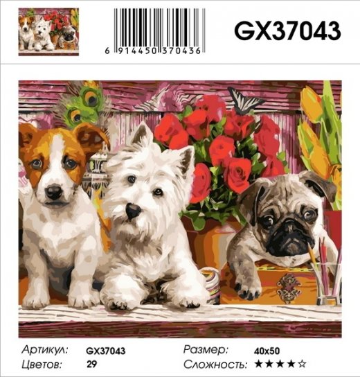 Состав набора: холст на подрамнике с нанесенной пронумерованной схемой, краски акриловые, кисти, крепления, контрольный лист.