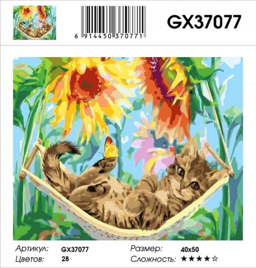Купить Картину по номерам Котенок в гамаке 40*50 см в Новосибирске Вы можете в магазине развивающих и настольных игр "Игры Почемучек"