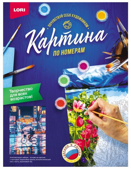 Картина по номерам подарит Вам возможность почувствовать себя художником и нарисовать собственный шедевр! Увлекательное занятие как для новичков, так и для любителей живописи. Каждый номер соответствует своему цвету акриловых красок, которые не нужно смешивать, что является большим преимуществом! Неспешное рисование успокаивает и отвлекает от мыслей о делах и заботах, а наблюдение за тем, как черно-белая основа становится красивым рисунком и дарит радость. Готовую картину можно покрыть лаком вставить в раму и украсить комнату или сделать близким памятный подарок! В набор входят: основа на картоне с контуром, акриловые краски и акриловый лак, кисть и вспомогательный лист, который представляет собой увеличенную копию картины для проверки выбранного цвета в ходе работы.