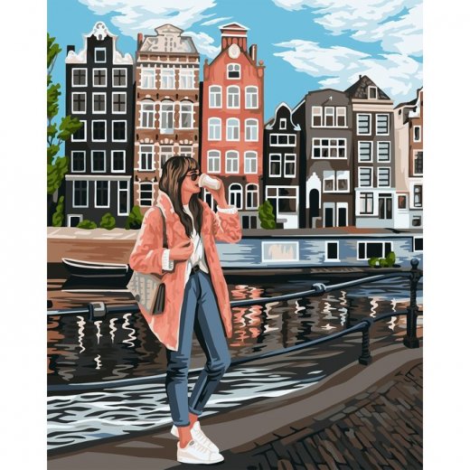 Картина по номерам на холсте с подрамником «Девушка в Амстердаме» 40х50 см понравится и детям, и взрослым.