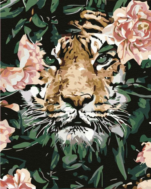 Купить Картину по номерам 40х50 см Тигр в розах на подрамнике в Новосибирске Вы можете в магазине настольных и развивающих игр "Игры Почемучек"