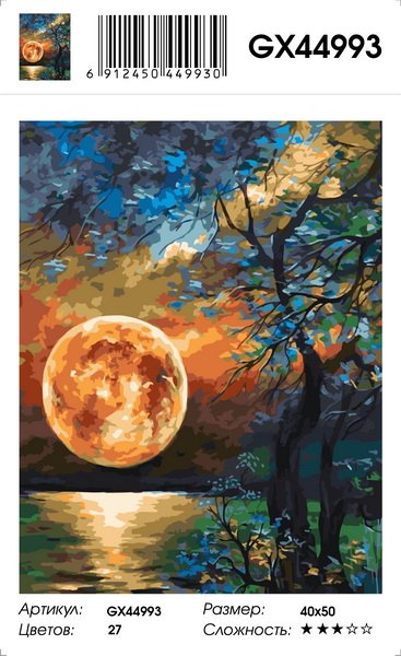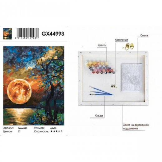 Картина по номерам Полнолуние 40 х50 см. Совсем не обязательно иметь специальные художественные навыки для написания современного или классического портрета, живописного пейзажа или восхитительного натюрморта. Достаточно всего лишь приобрести набор для творчества - картина по номерам.