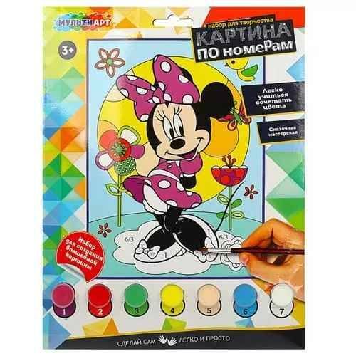 С помощью этого набора маленькая художница сможет самостоятельно нарисовать красивую картинку с изображением милого персонажа. Всё, что требуется - это подобрать цвет в соответствии с нумерацией на передней части коробки. Готовую поделку можно подарить близким или использовать для украшения интерьера.