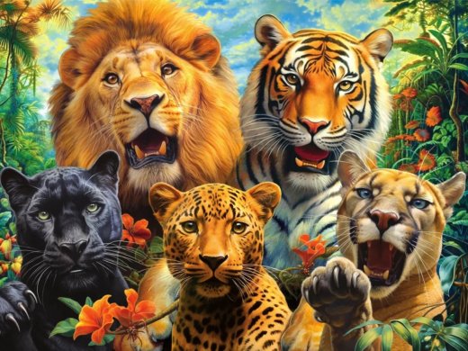 Купить Картина по номерам Селфи диких кошек 40 х50 см в Новосибирске Вы можете в магазине развивающих и настольных игр "Игры Почемучек".