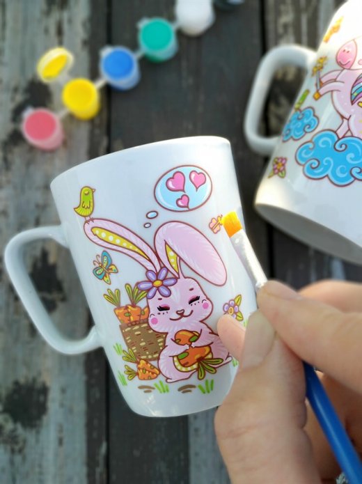 В наборе: кружка из фарфора, краски и кисточка.