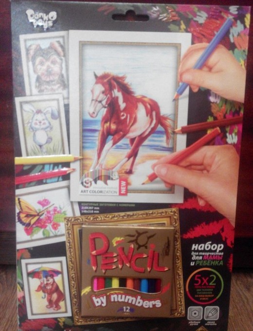 Раскраска карандашами по номерам, подойдет начинающим художникам от 3-х лет. Картинки созданные детскими руками не только украсят комнату, но и станут замечательным творческим подарком, настоящим шедевром, сделанным руками вашего малыша. Набор состоит из 5-ти рисунков различной сложности и подходит как для детей, так и для родителей. От простого к сложному. Выбираем рисунок, берем карандаши и создаем картину! Способствует развитию координации, аккуратности, мелкой моторике рук и усидчивости непоседы.