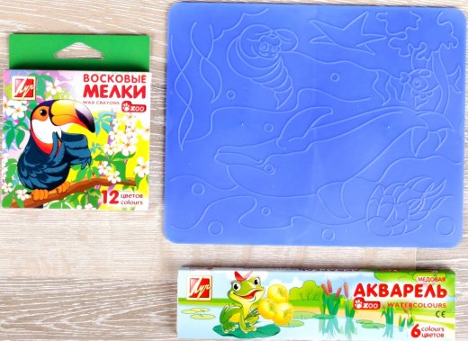 Набор для рисования Волшебные картинки Дельфины – предназначен для работы в смешанной технике, основанной на удивительном сочетании восковых мелков и акварельных красок, в результате которого получаются удивительно яркие и красивые рисунки. Рельефный трафарет, входящий в состав набора, поможет ребёнку получить чёткий, законченный рисунок. Кроме этого, работа с трафаретом поможет в игровой форме подготовить ребёнка к школе: послужит для развития руки и подготовки ее к овладению письмом, развития речи, интеллекта, художественного вкуса.