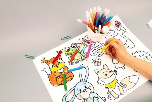 Купить Защитный коврик-раскраска для стола Зверюшки в Новосибирске Вы можете в магазине развивающих и настольных игр "Игры Почемучек"