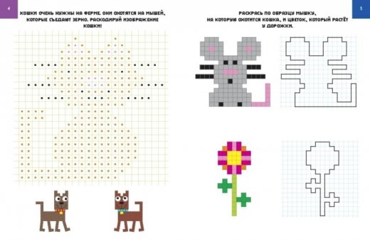 Пиксель – самая маленькая часть графической информации. Если рисунок состоит из квадратиков, то каждый квадратик – это пиксель. Книги серии «Пиксели. Раскраски» – целая вселенная, в которой привычные изображения представляются в виде набора пикселей! Чтобы раскрасить рисунок, для начала придётся разгадать шифр – раскодировать изображение. Цветовой код скрыт в обводках пикселей, цифрах, цветных точках и других объектах. Разгадать код несложно, но зато как увлекательно! Простой лист в клеточку вдруг превращается в полноценный рисунок.