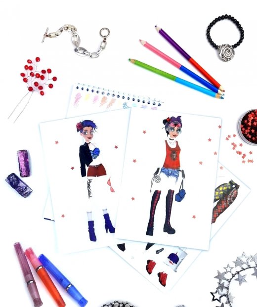 Блокнот «Ya!Style» подарит возможность девочкам реализовать себя в качестве художника-модельера одежды. В блокноте множество эскизов, которые можно раскрасить карандашами, дополнить элементами одежды с помощью трафаретов, и украсить аксессуарами-стикерами.