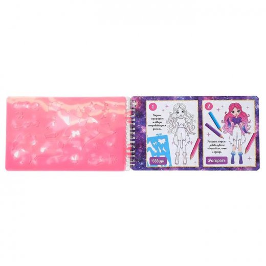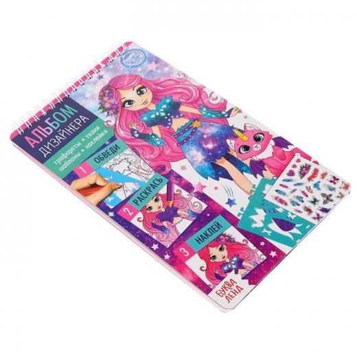 Малышка сможет самостоятельно создавать стильные образы, в этом ей поможет «Альбом дизайнера». Ребёнку нужно вырезать яркие аксессуары и модную одежду, а затем нарядить куколок.