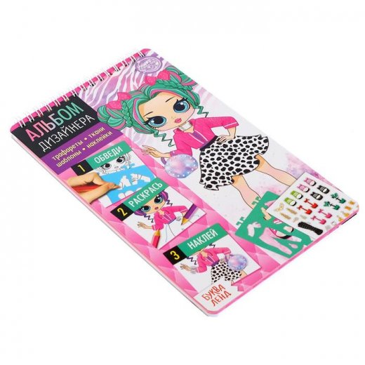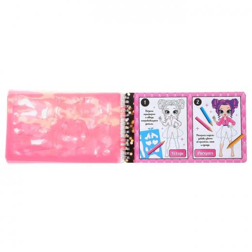 Малышка сможет самостоятельно создавать стильные образы, в этом ей поможет «Альбом дизайнера». Ребёнку нужно вырезать яркие аксессуары и модную одежду, а затем нарядить куколок.