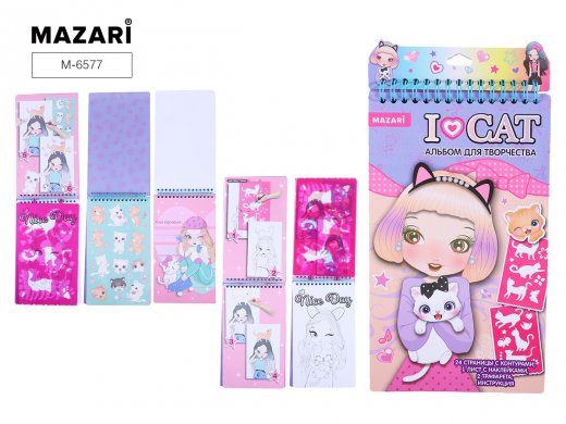 Альбом для творчества I LOVE CAT 14*24см 24стр с наклейками трафаретами