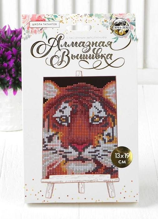 Алмазная вышивка Тигр – это прекрасный подарок для юных любителей творчества и поделок своими руками. Окунитесь вместе со своим ребенком в мир творчества! Новая серия сверкающих картин c частичным заполнением на мольберте позволит создать настоящий шедевр своими руками! В данном наборе есть небольшой мольберт, с ним готовое творение можно удобно расположить на полке или столе без дополнительных креплений.