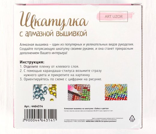Купить Алмазную вышивку на шкатулке Зайка в цветах в Новосибирске Вы можете в магазине развивающих и настольных игр "Игры Почемучек"