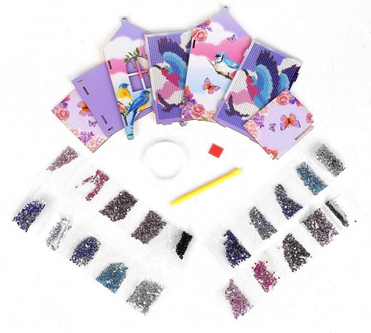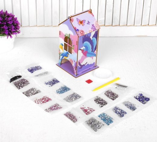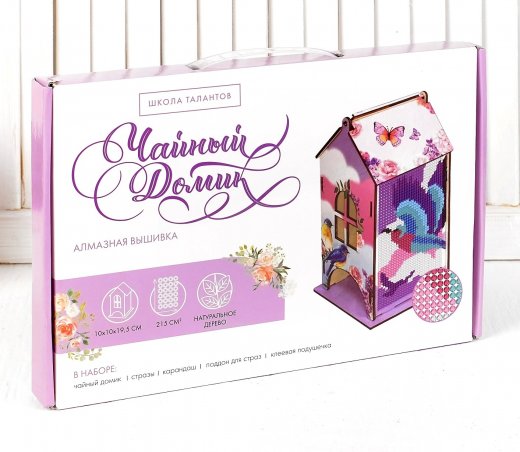 Состав набора: чайный домик, стразы, карандаш для страз, клеевая подушечка, емкость для страз.