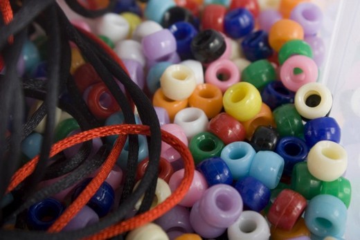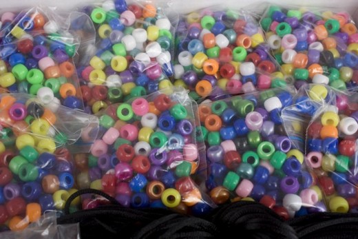 В наборе: Нити 2 цвета, бусины 8 пакетиков (микс), проволока разноцветная, замки для бус, карабины.