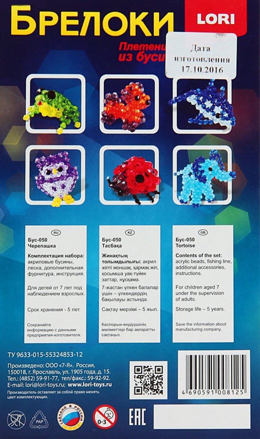 Купить Набор для творчества плетение из бусин черепашка в Новосибирске Вы можете в магазине развивающих и настольных игр "Игры Почемучек"