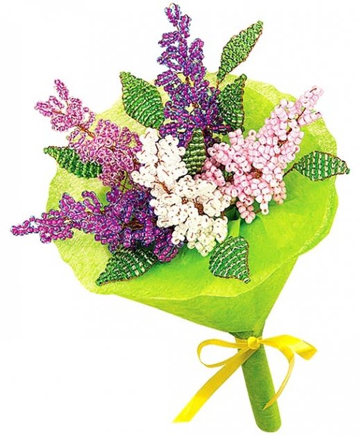 Букет из бисера Цветная сирень – непременно порадует ребенка в качестве подарка и весьма увлекательного занятия. Нежный перламутровый букет для мастериц, состоящий из пяти пушистых ветвей сирени, обрамленных свежей зеленью листьев! Эффект хрусталя от переливающегося бисера и подарочная упаковка из тонкого фетра с бантом делают букет оригинальным и незабываемым подарком на любой праздник!