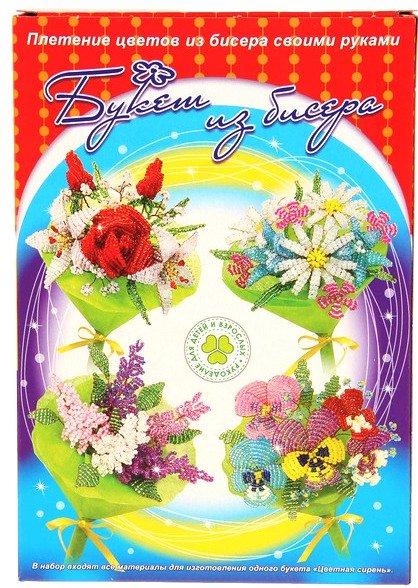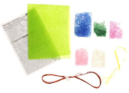 Состав набора: Бисер цветной, проволока, фетр тонкий, лента, подробная инструкция.