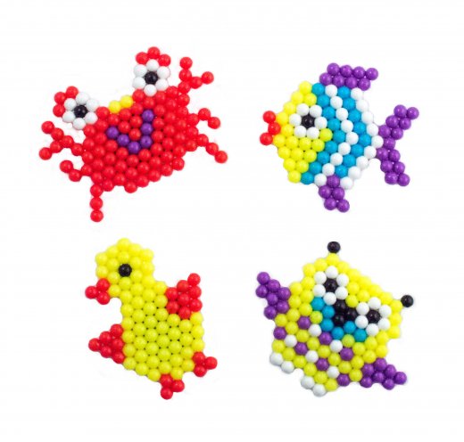 Состав набора: более 400 пластмассовых шариков, пластиковый планшет, 4 схемы с рисунками, 4 магнита.