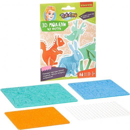Набор для творчества 3Д пазл из фетра Кролик – это великолепный и весьма занимательный подарок для творческого ребенка. Набор для творчества "3D-модели из фетра: Животные" из серии "Творчество с Луки" от фирмы Bondibon порадует юных рукодельниц. В комплекте есть все необходимое для создания трехмерных фигурок животных из кусочков фетра по выкройкам, фигурки получатся красивые и яркие. Такое увлекательное занятие непременно вовлечет ребенка в творческую работу надолго и с огромным удовольствием. А сам процесс изготовления подарит массу положительных эмоций и много восторга. Готовые фигурки можно использовать как украшения для дома или для подарка близким людям. Занятие такого рода - это хороший способ для времяпрепровождения досуга ребенка, которое будет для ребенка не только в удовольствие, но и принесет большую пользу в его развитии.