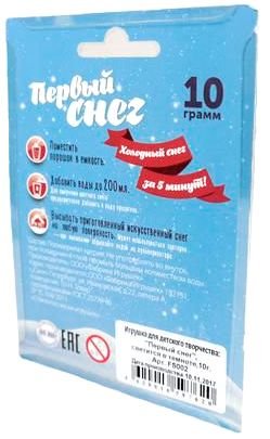Ощутите приятную прохладу играя с воздушным и очень приятным на ощупь «Первым снегом». Постройте из его снежные фигуры или украсьте комнату. Его мягкие снежинки отлично лепятся в различные формы, но при этом не оставляют следов. Первый снег – это незаменимый материал для зимнего декорирования. Дети с удовольствием проводят с таким снегом свои первые химические опыты, раскрашивают его в разные оттенки и лепят снеговиков прямо дома.