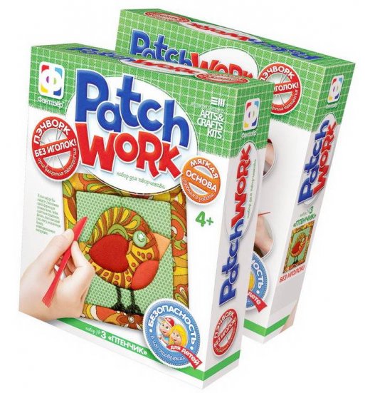 Пэчворк без иголки Птица – это замечательный подарок для юного любителя творчества. Птичка-невеличка совсем как живая: вот-вот побежит по зеленой дорожке и запоет свою веселую песенку. В комплект входит мягкая основа, в которой проделаны углубления, выкройка и разноцветные кусочки ткани. Малышу нужно собрать их в соответствии с рисунком, аккуратно заправить края пластиковым ножиком - и картина готова! Мягкое панно будет прекрасно смотреться на стене в детской комнате и напоминать маленькому художнику, что творчество - это радость!