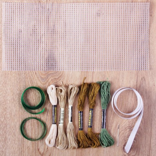 Состав набора: канва, иголка, нитки мулине, атласные ленты.