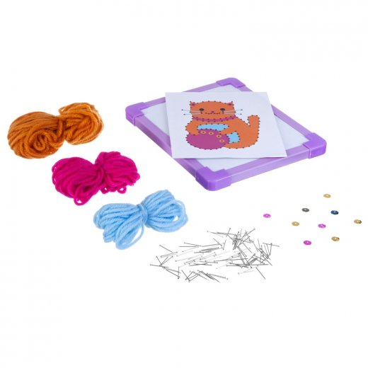 Нитяная Графика Bondibon позволит ребятам создать объемную картину из ниток, которая натягивается на небольшие гвоздики, укрепляемые на основании картины. В наборе есть всё необходимое для этого вида творчества основа для картины, фоторамка, набор нитей, гвоздики, пайетки, цветная схема, инструкция. Из данного набора можно создать милого котенка.