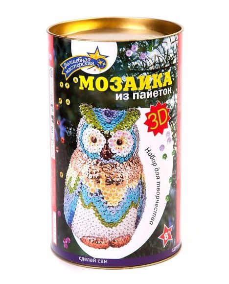 Купить 3D мозайку из пайеток Сова в Новосибирске Вы можете в магазине развивающих и настольных игр "Игры Почемучек"