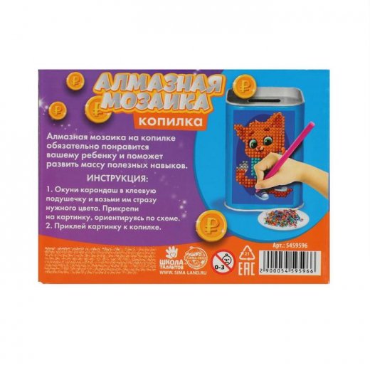 Если ваш ребёнок обожает алмазную мозаику, то этот набор непременно ему понравится. Яркие стразы, удобный карандаш, лёгкость в создании поделки - всё это делает алмазную мозаику на копилке отличным набором для творческого времяпрепровождения.