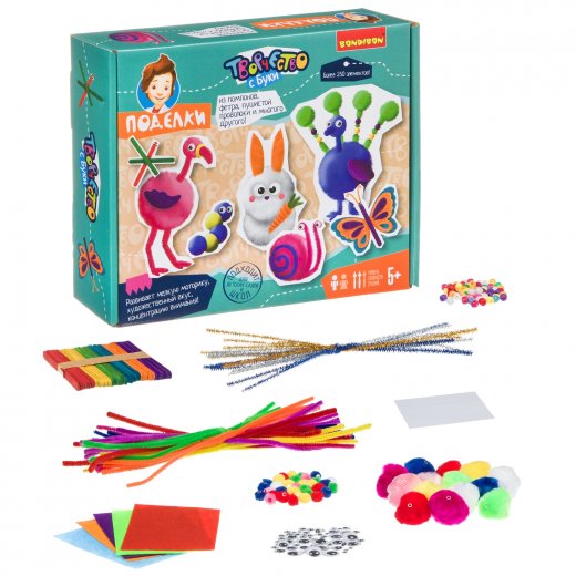 Предложенные схемы сборки и собственная фантазия позволят создать огромное множество забавных игрушек! Пробуйте, фантазируйте, создайте собственную коллекцию! Поделки из фетра, пушистой проволоки, фетра, бусин и многого другого - это отличный развивающий набор, с помощью которого Ваш ребенок вдохновится на создание собственных шедевров! Разнообразные яркие материалы, отличные развивающие свойства готовое решение для садов и школ!