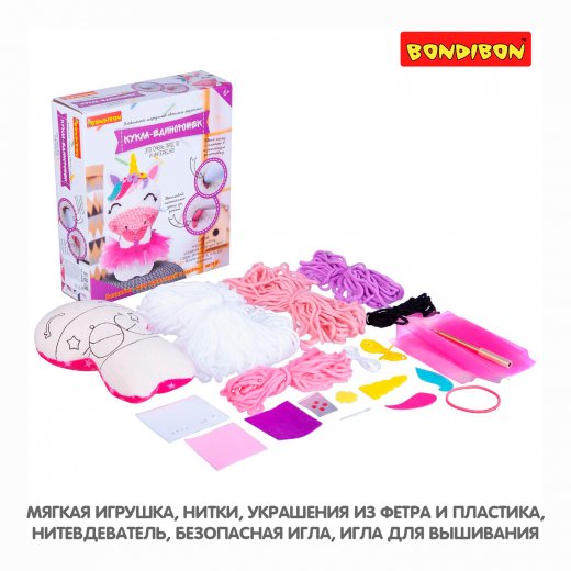 Игрушка, сделанная своими руками, всегда будет особенной. Bondibon - для ярких идей и веселых затей! В наборе: мягкая игрушка, нитки, украшения из фетра и пластика, нитевдеватель, безопасная игла, игла для вышивания.