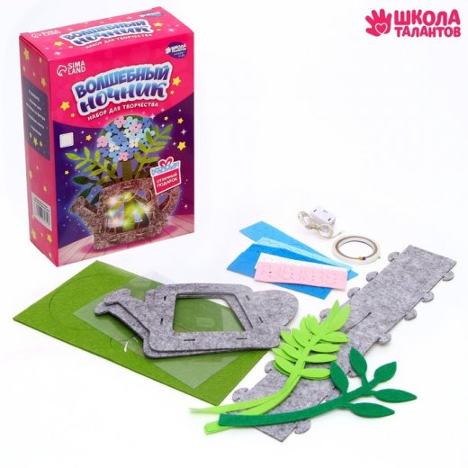 Набор для творчества поможет вам с малышом увлекательно провести время и создать настоящий ночник своими руками. Соединяйте фетровые детали и делайте аппликацию на основе. И хотя это совсем не трудно, крохе придётся быть усидчивым и внимательным, совсем как взрослому!